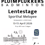 Beste jeugdspelers, In de paasvakantie vindt de jaarlijkse Pluimplukkers lentestage opnieuw plaats, deze keer van maandag 13 t.e.m. woensdag 15 april 2026. We trainen in buurtsporthal Melopee, Kompasplein 2 te Gent, telkens van 9:00 uur - Winterstage van 29 tot 30 december 2025